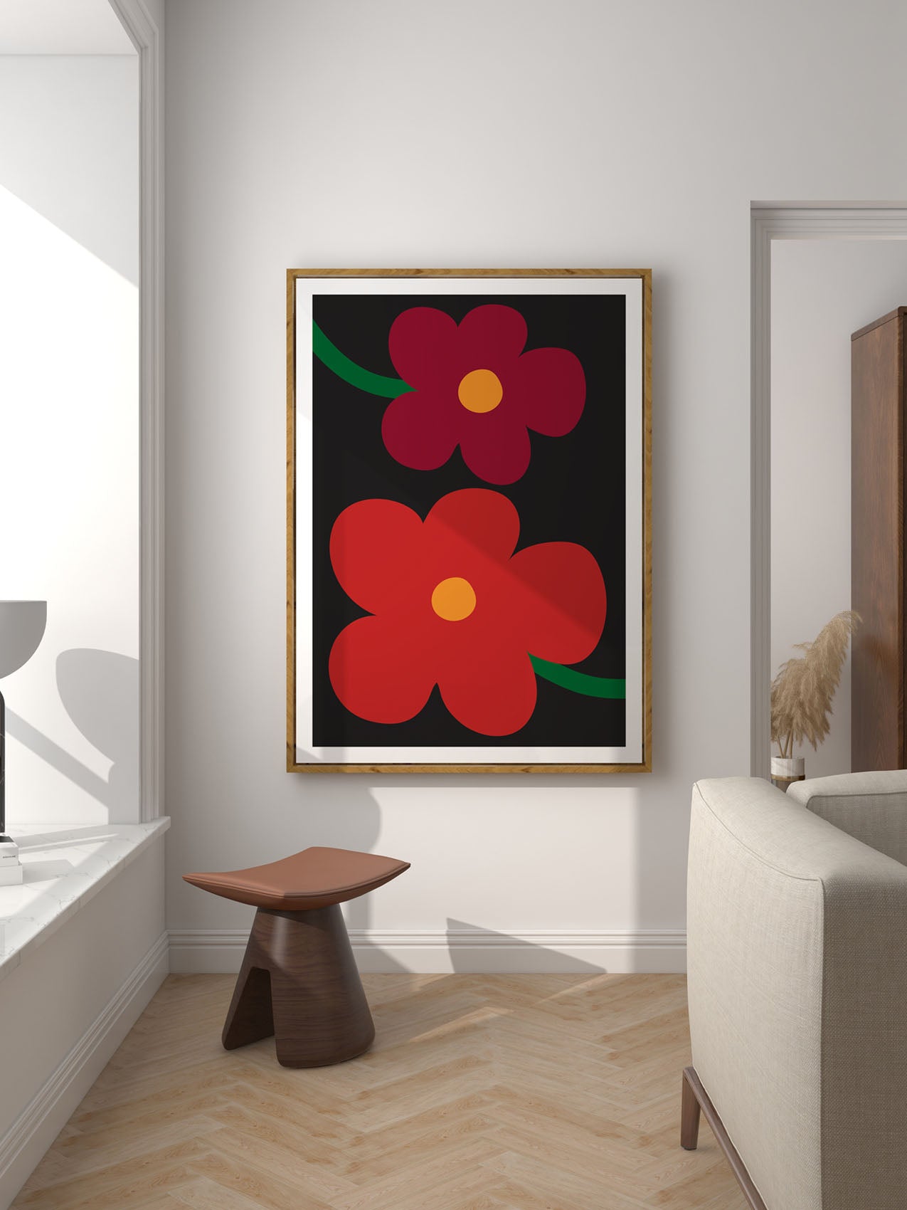 Our frames are handcrafted from high-quality wood, milled with simple clean lines and presented with a satin finish. They have a perspex glaze offering great sunlight resistance, protecting your print from uv rays and sunlight.