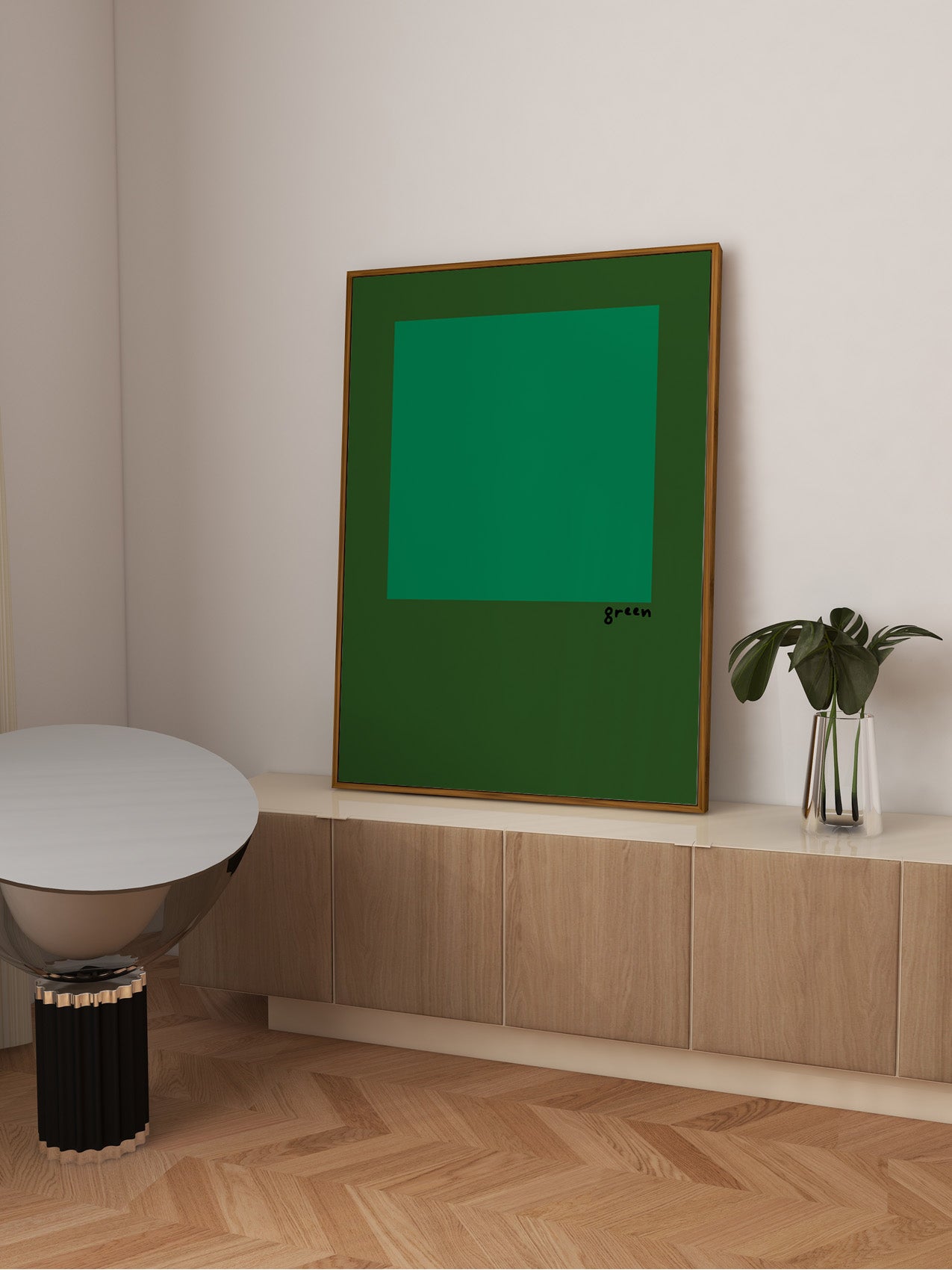 Transform your space with Green Print, a minimalist yet powerful abstract work that explores the emotional impact of colour. Printed on eco-friendly materials with water-based inks, experience the transformative power of colour. Add a touch of eco-conscious art to your home today.