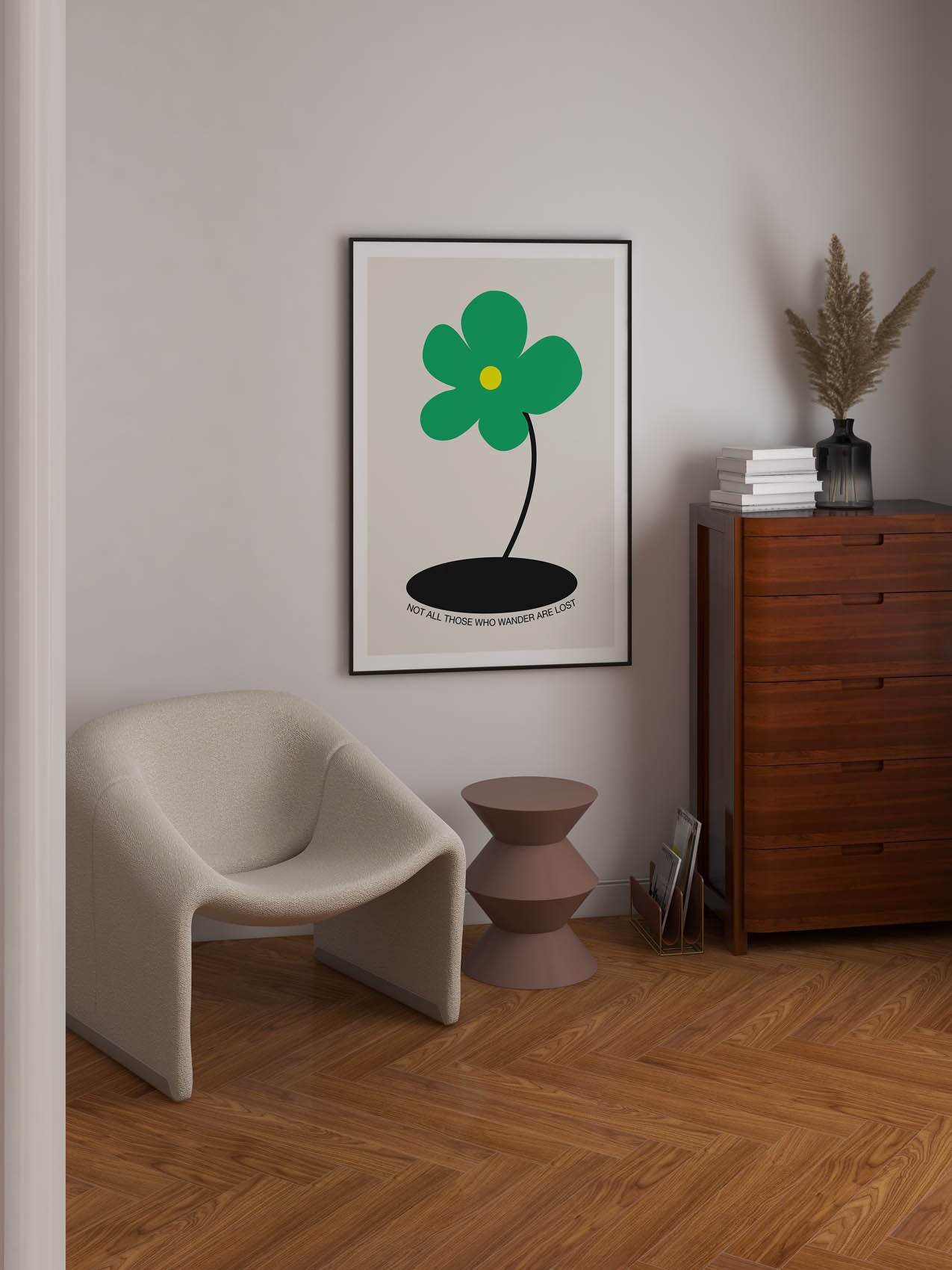 Not all those who wander are lost is a print that draws from the well-known J.R.R. Tolkien quote. It portrays a flower in bloom to showcase the notion that, just like flowers, our path is distinct and beautiful, even if it is not always linear.