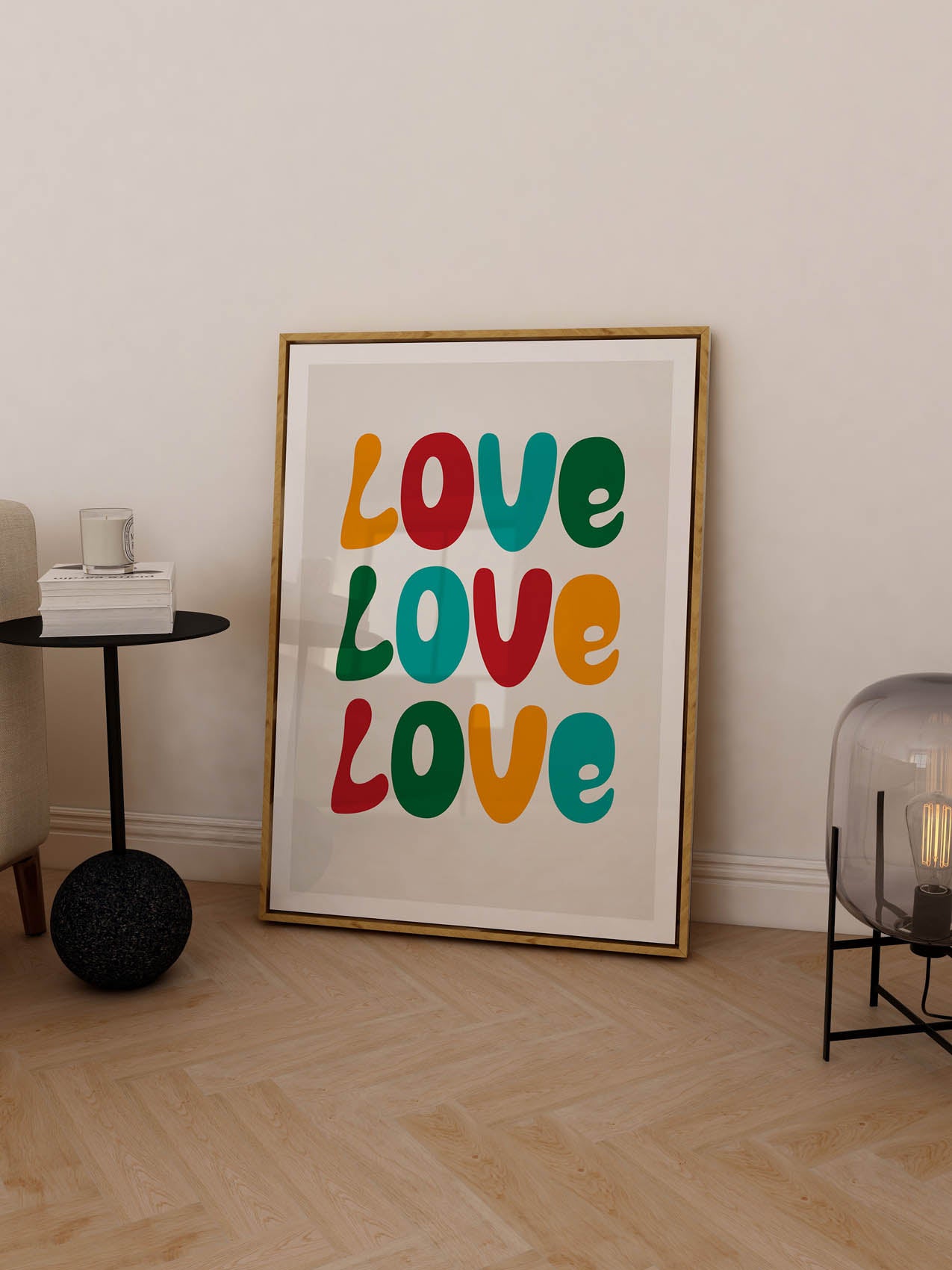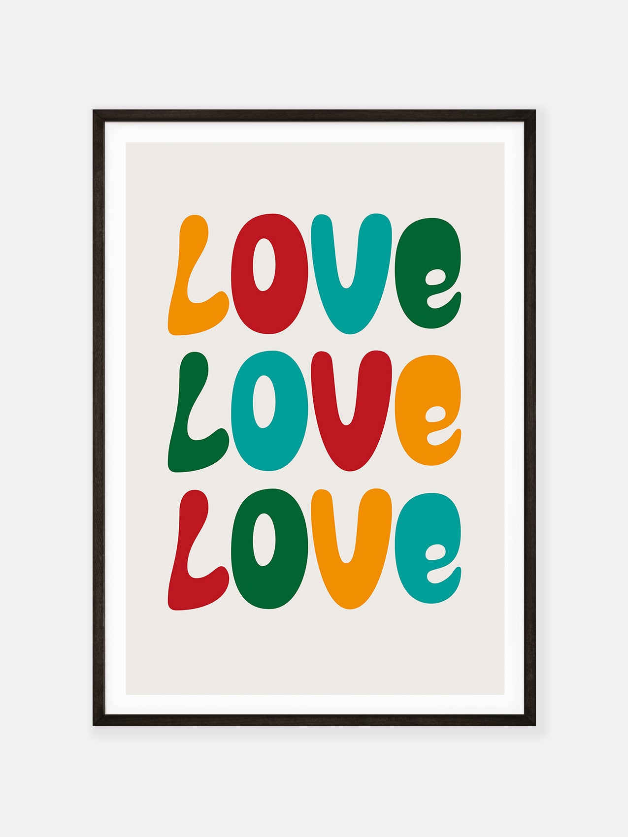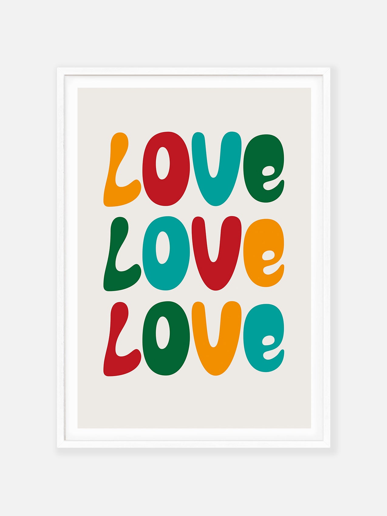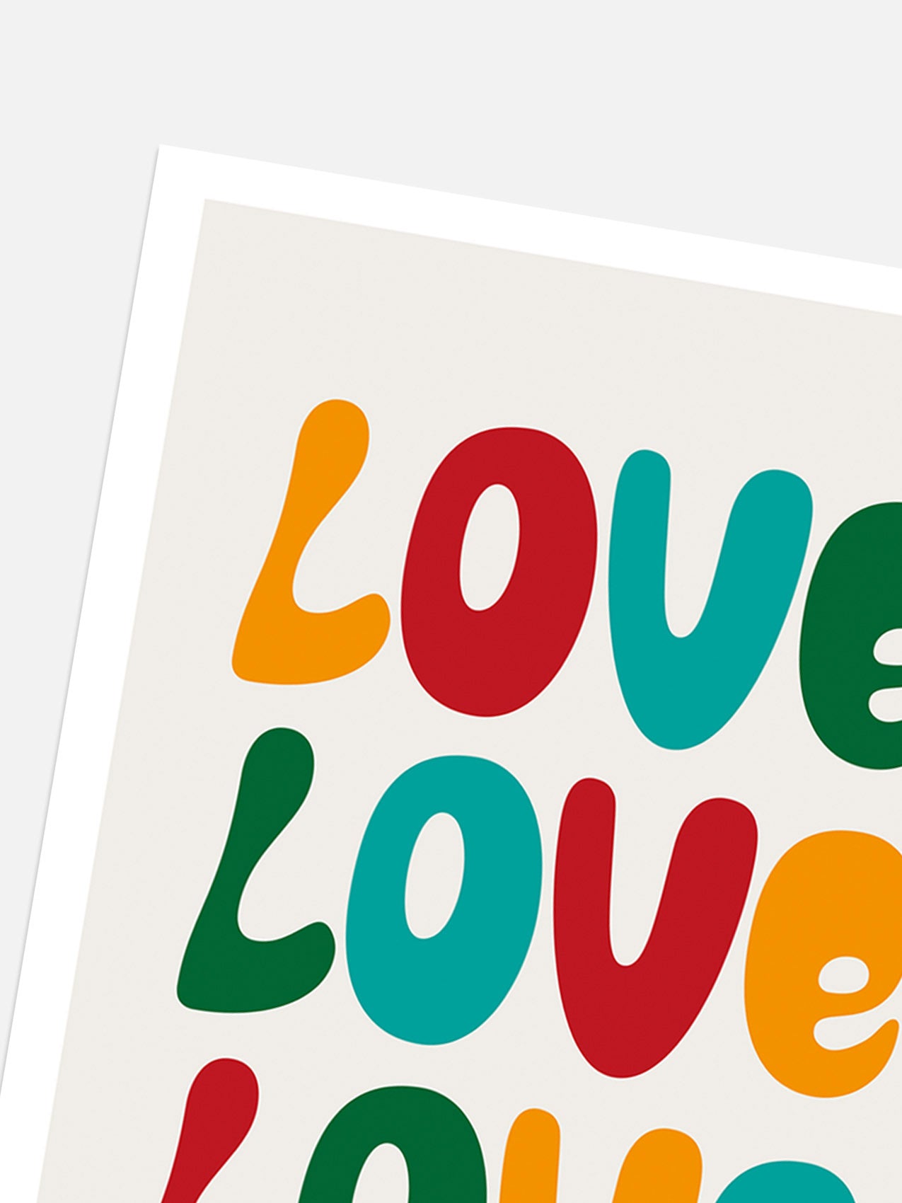 Exploring the typographic diversity of love, this print illustrates how it comes in an array of sizes and shapes. The distinct letters encapsulate the individual nature of each person's love and narrative.