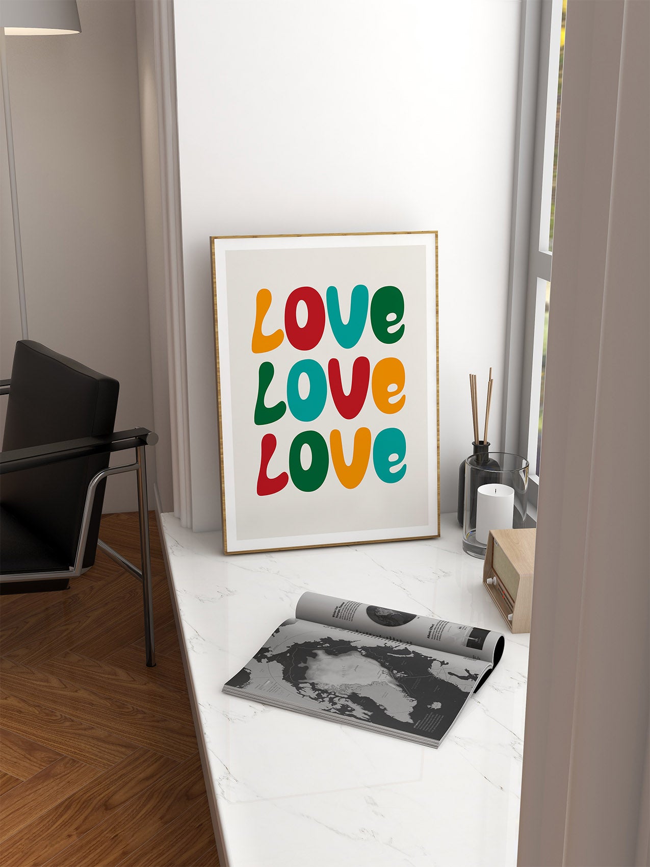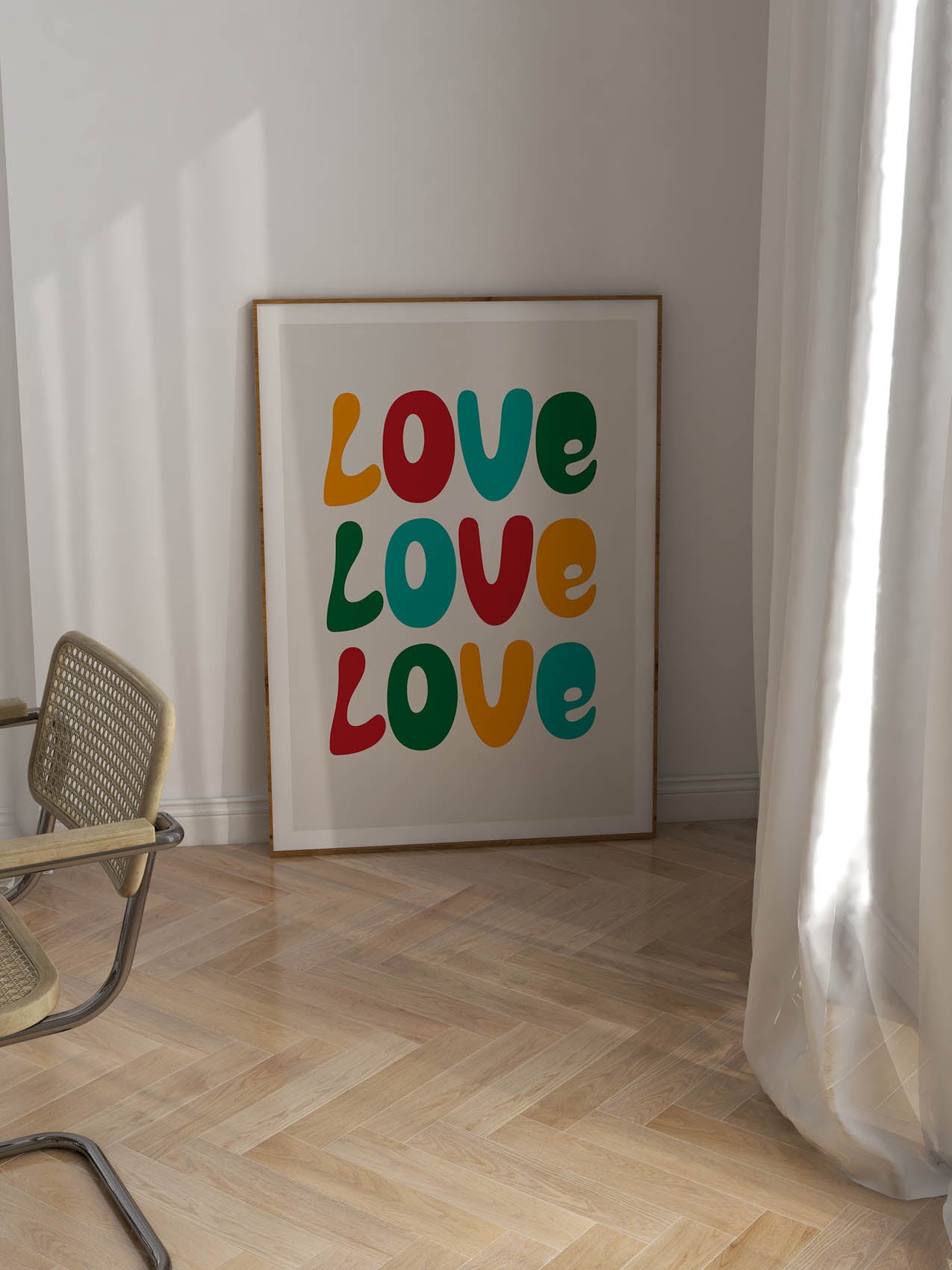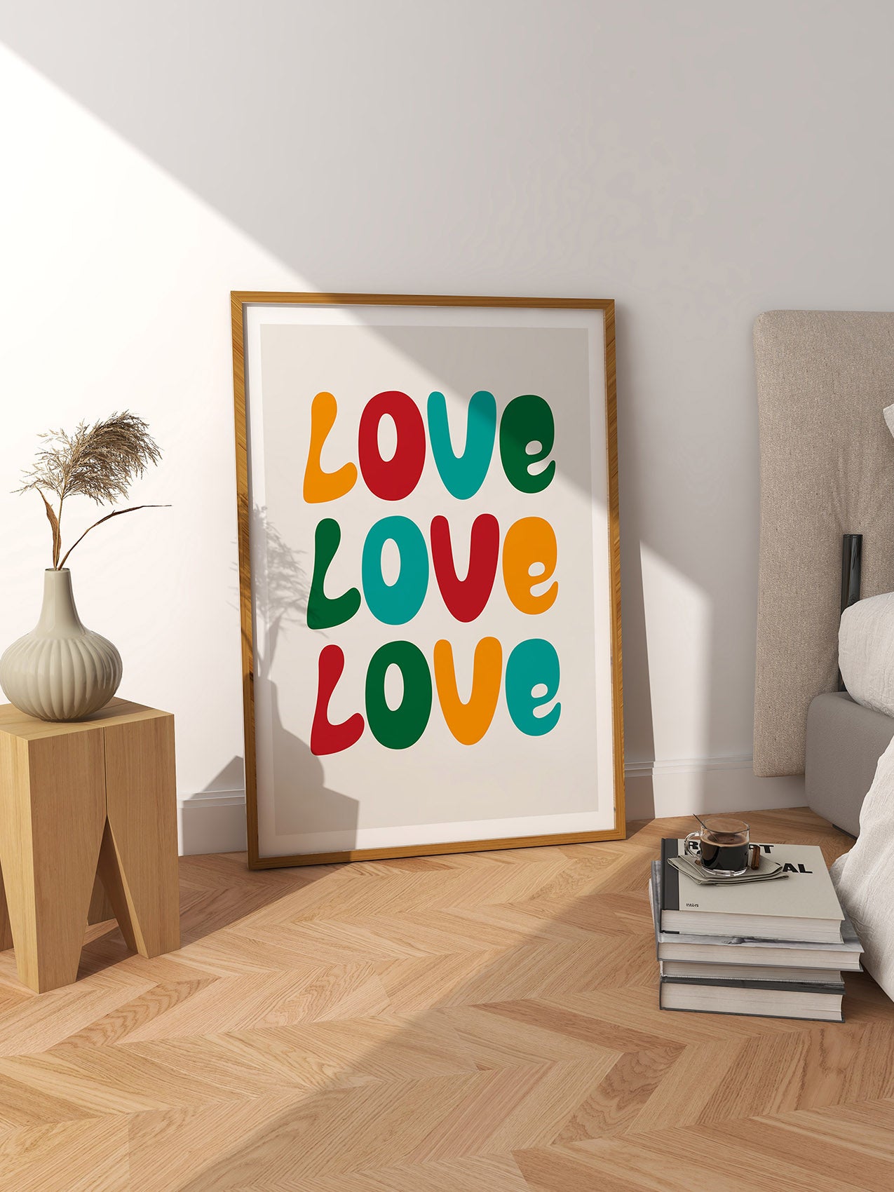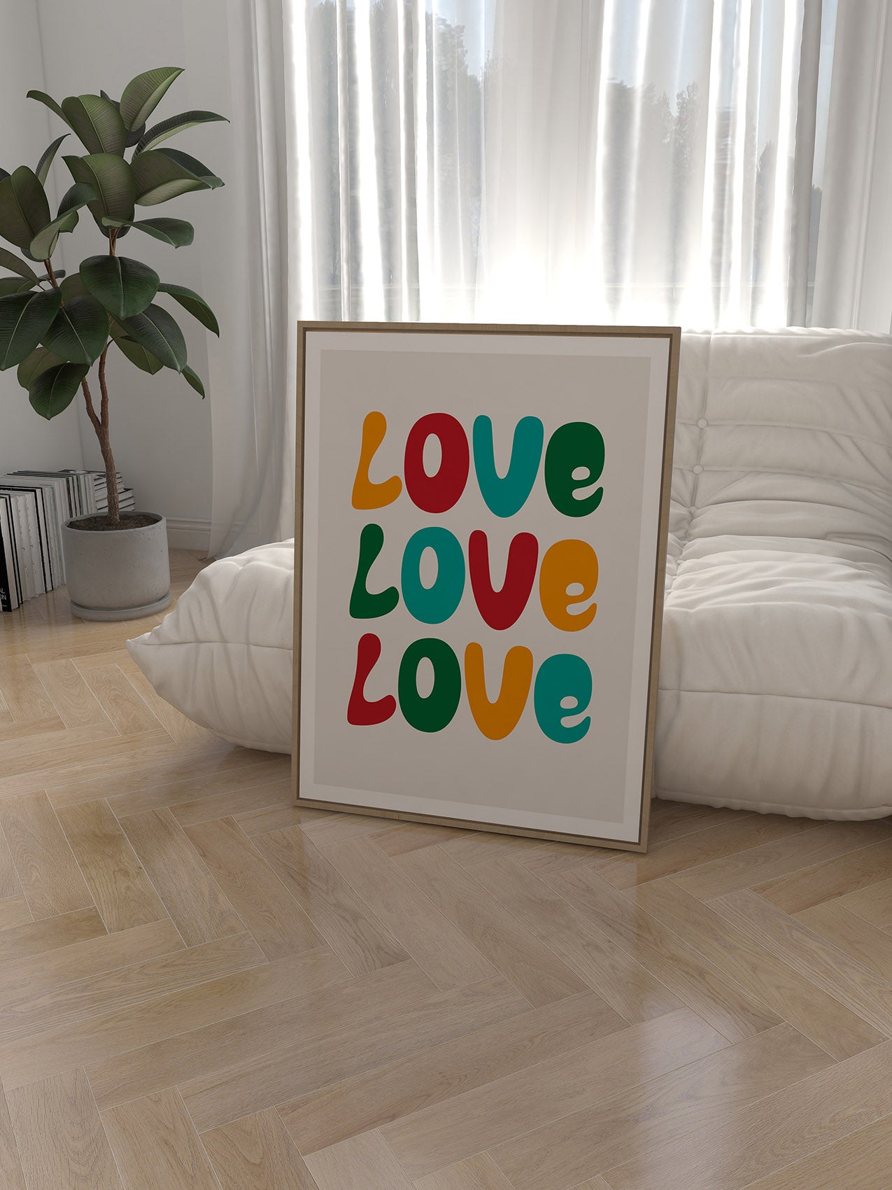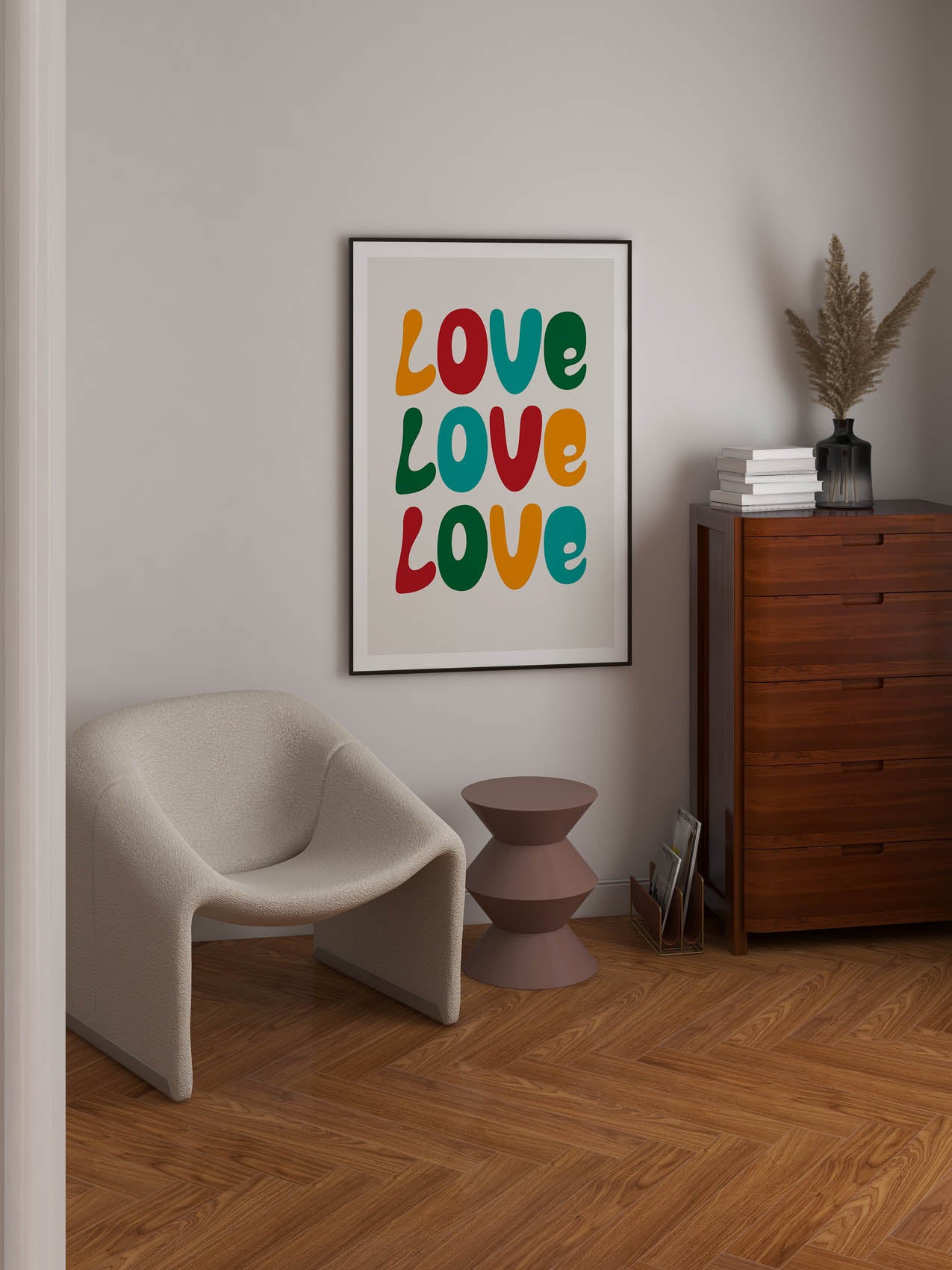 Exploring the typographic diversity of love, this print illustrates how it comes in an array of sizes and shapes. The distinct letters encapsulate the individual nature of each person's love and narrative.